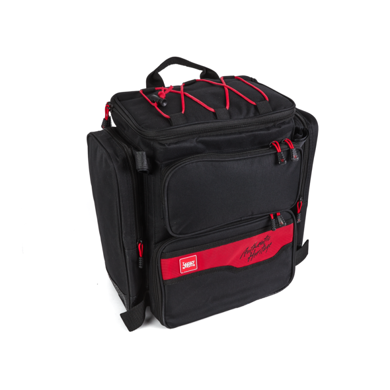 Ylä- ja alalokeron välinen irrotettava väliseinä antaa joustavuutta tilankäyttöön, ja alaosasta löytyvät kolme muovilaatikkoa pienvälineiden säilytykseen. Lisäksi repussa on useita sisä- ja sivutaskuja, läpinäkyvä lokero, pidikkeet vavoille ja haaville, sekä pehmustetut olkahihnat ja selkäpaneeli käyttömukavuutta varten. Vedenpitävä pohja varmistaa, että sisältö pysyy kuivana myös kosteissa olosuhteissa.