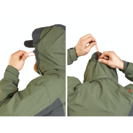 Vedenpitävä ja hengittävä sadeasu kalastukseen. Teipatut saumat, säädettävä huppu, vahvistetut polvet ja useat taskut tekevät siitä luotettavan valinnan vaativiin sääolosuhteisiin.
