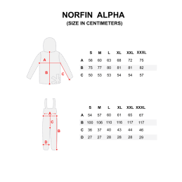 Norfin ALPHA on monikäyttöinen, hengittävä ja vedenpitävä kalastuspuku, joka suojaa sinut tuulelta ja sateelta kovissakin olosuhteissa. NORTEX BREATHABLE -materiaali ja täysin teipatut saumat takaavat kuivana pysymisen, ja moderni leikkaus yhdistyy käytännöllisiin yksityiskohtiin. Takki ja housut ovat suunniteltu mukavuus ja toiminnallisuus edellä – niin kalavedellä kuin retkillä.