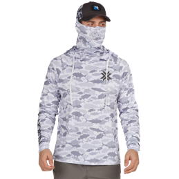 Tekninen UV-suojapaita hupulla ja kasvomaskeilla. Hengittävä, nopeasti kuivuva ja kosteutta siirtävä materiaali suojaa ihoa auringolta (UPF 50+), jopa märkänä – täydellinen kalastukseen ja ulkoiluun kuumassa säässä.