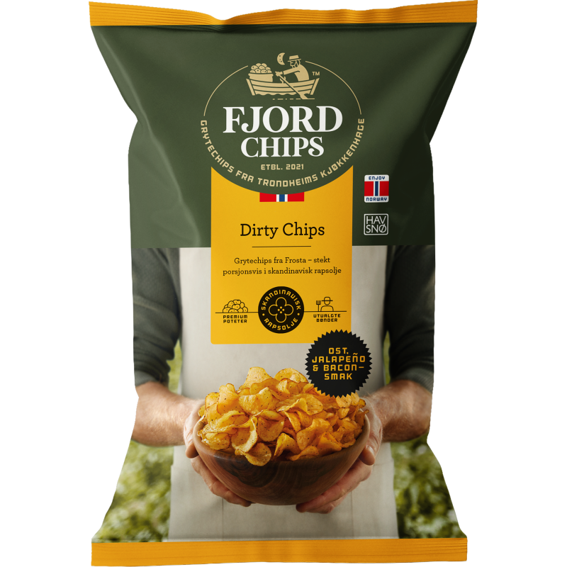 Dirty-ranskisten inspiroima sipsimaku, jossa yhdistyy juusto, jalapeño ja savuinen pekonimainen aromi. Tehty norjalaisesta laatuperunasta!