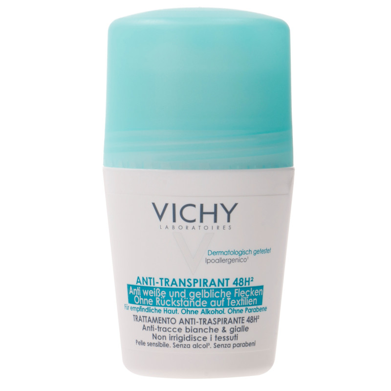 Raikkaan tuoksuinen antiperspirantti tahroja vastaan. Tehokas ja hellävarainen Vichy Deo 48H Antiperspirant Anti-Trace Roll-On pitää kainalot kuivina ja raikkaina, estäen hikoilua ja epämiellyttävää hajua jopa 48 tuntia. Kevyt koostumus imeytyy nopeasti eikä jätä valkoisia tai keltaisia jälkiä vaatteisiin. Rauhoittavaa Vichy Thermal Spa -lähdevettä ja alumiinosuoloja sisältävä deo on kehitetty erityisesti herkälle iholle. Jättää ihon pehmeän ja miellyttävän tuntuiseksi.