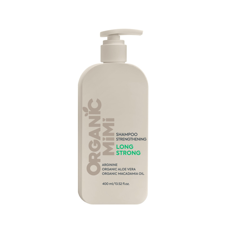 Hiuksia vahvistava shampoo puhdistaa hiukset sekä päänahan hellävaraisesti. Arginiini vahvistaa ja palauttaa hiusten rakennetta, ehkäisee hiustenlähtöä ja palauttaa hiusten vahvuuden ja kimmoisuuden. Luomu makadamiaöljy ja aloe vera -mehu edistävät hiusten kasvua, silottavat ja hoitavat hiuksia, kosteuttavat ja ravitsevat, lisäävät hiusten joustavuutta ja antavat hiuksille kiiltoa ja hehkua.
