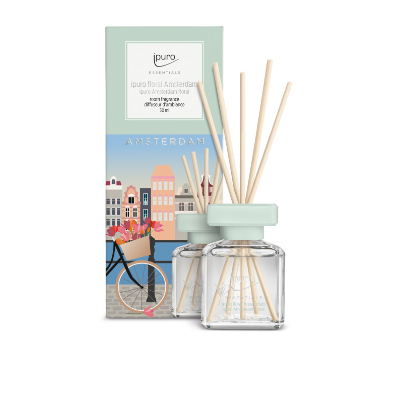 iPuro huonetuoksu luo tunnelman jokaiseen tilaan. Floral Amsterdam hurmaa tuoreiden kevätkukkien tuoksulla.