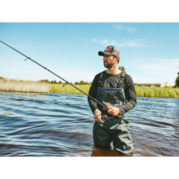 Kestävät ja hengittävät kahluuhousut integroiduilla neopreenisaappailla. Nelikerrosrakenne, säädettävät olkaimet ja vesitiivis tasku takaavat mukavuuden ja suojan kaikissa kalastusolosuhteissa.