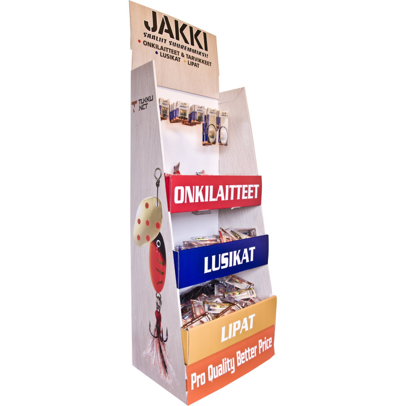 Erinomainen valikoima myydyimpiä Jakki tuotteita yhdessä telineessä! Tästä on helppo valita perusvieheet ja tarvikkeet mökille!
