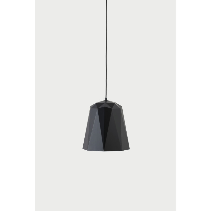 Mattamusta geometrinen kattovalaisin, suunnittelija Philip Ding. Mitat k 36 x Ø 35 cm.