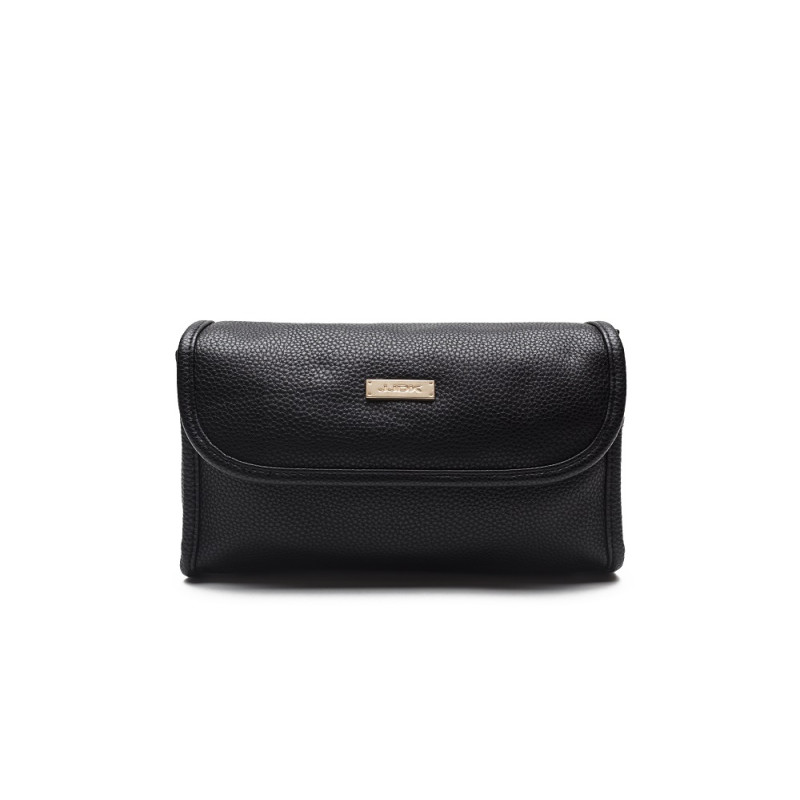 Tilava kosmetiikkalaukku, jossa peili ja kaksi vetoketjullista taskua. Väri: musta. Materiaali: keinonahkaa. Koko 23x13x5cm.