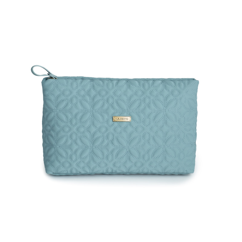 Tilava ja tyylikäs meikkilaukku jossa kuusi joustavaa sisätaskua ja kaunis tikattu kuvio. Väri: turkoosi. Materiaali: keinonahkaa. Koko 30x20x12 cm.