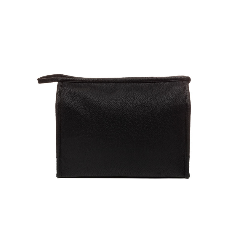 Klassinen musta kosmetiikkalaukku, jossa vetoketju ja kaksi joustavaa sisätaskua. Materiaali keinonahkaa. Koko 26x20x9 cm