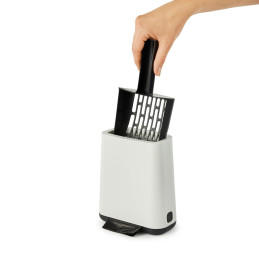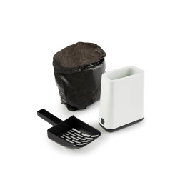 Tyylikäs MyPet Biala -kissanvessan puhdistussetti sisältää kissanhiekkalapiotelineen, lapion ja rullan kakkapusseja sekä kätevän paikan pussirullalle, josta pussit on helppo ottaa käyttöön. Likainenkin kissanhiekkalapio pysyy siististi piilossa telineessä.