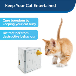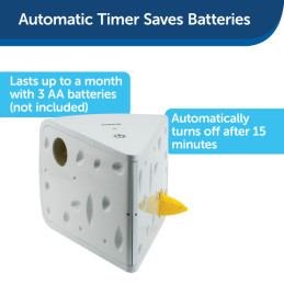 PetSafe® Cheese Automatic kissanlelu tarjoaa päivitetyn version klassisesta kissa-hiiri -leikistä. Tämä interaktiivinen juustotahko sisältää kaksi hiirtä, jotka ponnahtavat välillä ulos pitäen kissasi valppaana ja saalistamassa koko leikin ajan.