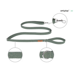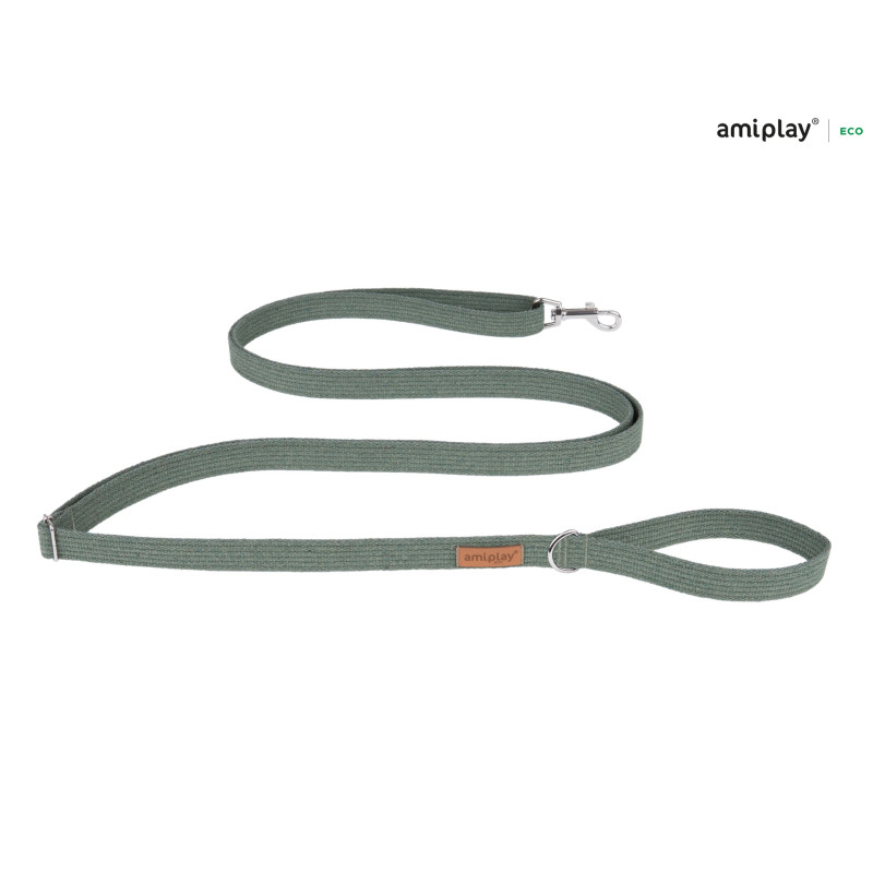 Talutin on valmistettu amiplayn yksinoikeudella erittäin kestävästä ja joustavasta kaksipuolisesta puuvillanauhasta, joka on pehmeän ja mukavan tuntuinen sekä koiralle että omaan käteen. Hihna on vahvistettu kiinnityskoukun ja käsilenkin ympäriltä, mikä parantaa kestävyyttä ja lisää käyttöikää. Käsilenkin lähellä olevaan silmukkaan voit kiinnittää vaikka kakkapussipussukan.
