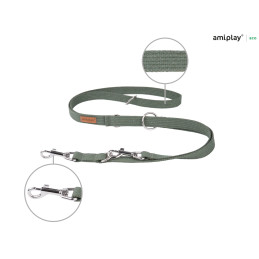 Talutin on valmistettu amiplayn yksinoikeudella erittäin kestävästä ja joustavasta kaksipuolisesta puuvillanauhasta, joka on pehmeän ja mukavan tuntuinen sekä koiralle että omaan käteen. Hihna on vahvistettu kiinnityskoukun ja käsilenkin ympäriltä, mikä parantaa kestävyyttä ja lisää käyttöikää. Käsilenkin lähellä olevaan silmukkaan voit kiinnittää vaikka kakkapussipussukan.