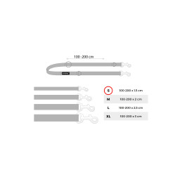 Hihnan säädettävä pituus sopii erityisesti pentujen kaunpunkikäyttöön. Kapein S-koon malli soveltuu pienten rotujen koirille, alle 10kg ja M-koko keskikokoisille 25kg, ja L-koko isoille roduille 40kg asti.