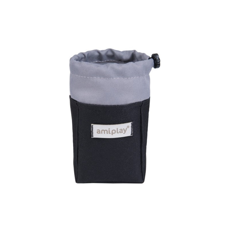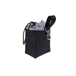 Tämän pussin suunnittelussa on huomioitu myös ihminen - pussin saa kiinnitettyä vyöhön vyölenkillä tai vaihtoehtoisesti melkein mihin tahansa tukevalla pikalukolla. Kiristys pussin suuaukolla pitää herkut sisällä, kunnes on namien aika.
