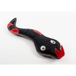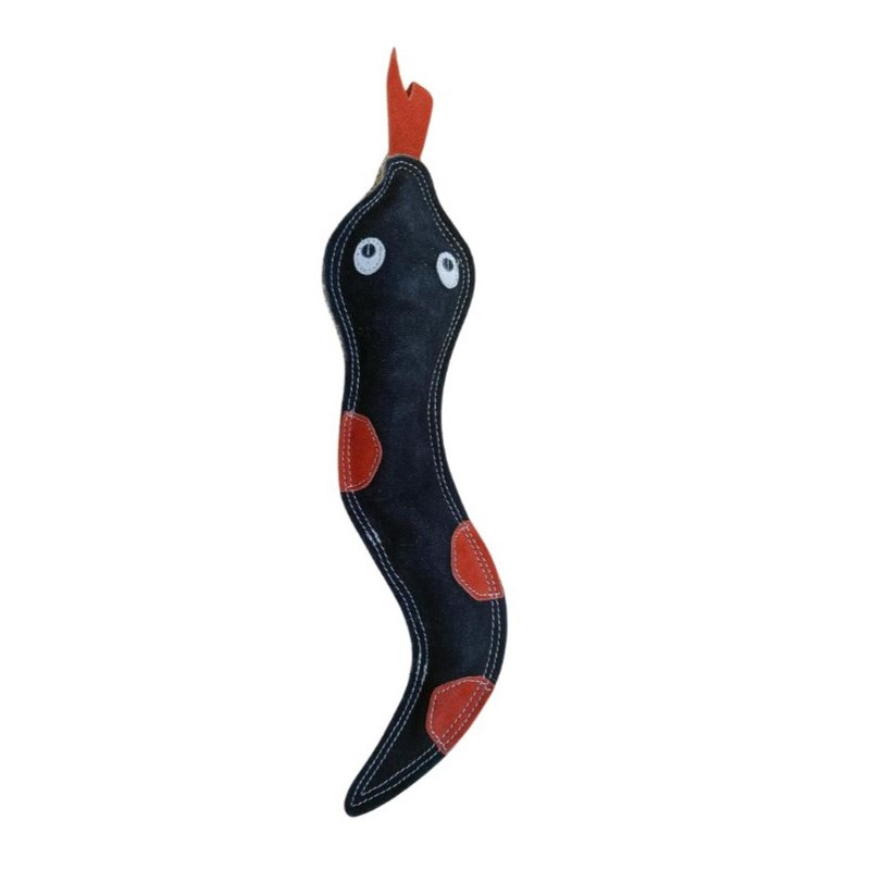 Tyylikäs, aidolla mokkanahalla päällystetty käärmelelu, jossa on täytteenä kookoskuitua. Lujarakenteinen ja hauskanmuotoinen heittoleikkeihin ja purtavaksi! Käärme on valmistettu vahvasta juuttikankaasta ja päällystetty pehmeällä mokkanahalla.