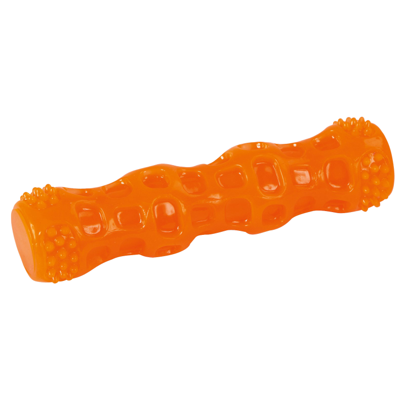 Kerblin TPR-patukka on monipuolinen lelu, joka tarjoaa koirallesi hauskaa tekemistä päivästä toiseen. Patukka on valmistettu kestävästä TPR-materiaalista, joka tekee siitä erittäin tukevan ja puremisen kestävän. Sisäänrakennettu vinkutoiminto lisää leikin iloa ja motivoi koiraa tarttumaan patukkaan uudelleen ja uudelleen. Materiaali on hellävarainen hampaille ja ikenille, joten lelu sopii kaikenikäisille koirille turvalliseen käyttöön. Patukka kelluu vedessä, mikä tekee siitä oivan vaihtoehdon myös uimareille ja vesileikkeihin. 18 cm pituinen ja 4 cm paksu patukka on kätevän kokoinen ja tarjoaa paljon vaihtelua koiran arkeen – niin sisällä kuin ulkona.