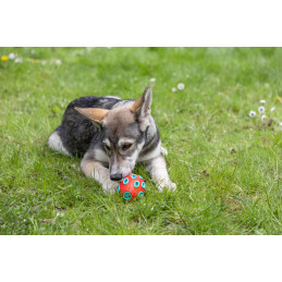 Kerblin täytettävä rugbypallo tarjoaa koirallesi sekä viihdykettä että virikkeitä päivään. Pallon sisälle voi kätkeä herkkuja tai kuivamuonaa, jotka houkuttelevat koiraa pyörittämään ja kantamaan lelua yhä uudelleen. Pinnan kolot vapauttavat herkut vähitellen, mikä tekee leikistä palkitsevaa ja haastavaa. Päädyissä olevien reikien ansiosta pallon täyttäminen on helppoa ja nopeaa. Kestävästä kumista valmistettu pallo kestää innokkaankin käytön, mutta on samalla hellävarainen hampaille ja ikenille. Kompakti koko (12 x 7,5 cm) tekee pallosta sopivan monen kokoisille koirille ja sen kirkas väri helpottaa löytämistä niin sisällä kuin ulkona.