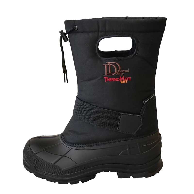 DePaul Design ThermoMate Easy talvisaappaat tekevät talvesta helpomman. Leveän varren ja kädensijojen ansiosta saappaat on erittäin helppo ja nopea pukea jalkaan. Saappaiden tarrakiinnitys varmistaa sen, että ne istuvat napakasti jalassa ilman, että kiristys tai säätö veisi ylimääräistä aikaa. Erittäin mukavat ja lämpimät pitää jalassa. Nämä saappaat on suunniteltu talven kovimpiin olosuhteisiin. 100% vettä pitävä TPR-alaosa ja lumenpitävä, vettä hylkivä tekstiilivarsi pitävät jalat kuivina, oli kyseessä sitten loskakeli tai syvä lumihanki. Pohjakuvio tarjoaa pitoa liukkailla pinnoilla, joten voit liikkua turvallisesti myös jäisissä olosuhteissa. ThermoMate Easy saappaat sopivat täydellisesti kaikkeen talven ulkoiluun, kuten kelkkailuun, pilkkimiseen ja muuhun talviseen tekemiseen. Lämpötila-alueeltaan +5°C - -25°C, nämä saappaat ovat loistava valinta kylmiin talvipäiviin. .