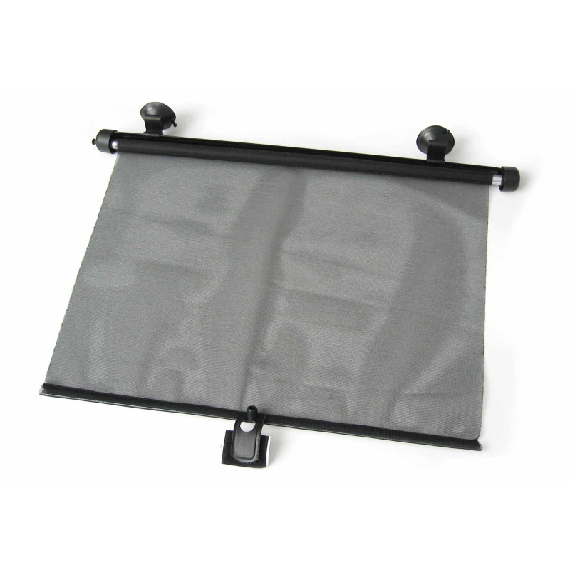 Rullattava aurinkosuoja kiinnitetään koukuilla tai imukupeilla takapenkin sivuikkunaan. Tämä suojaa matkustajia suoralta auringonsäteilyltä ja sopii kaikkiin suoriin autonikkunoihin. Koko leveys 41cm, korkeus 46cm. Ei sisällä PVC:tä. Pakkauksessa on yksi aurinkosuoja.