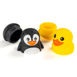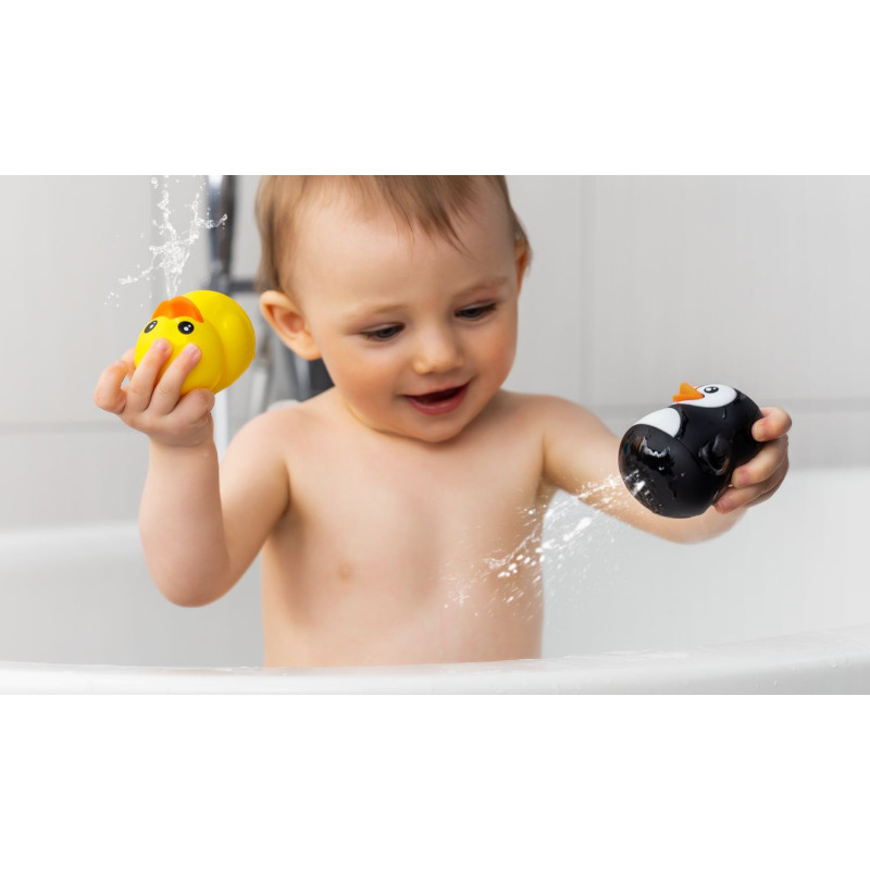 Ankka ja pingviini ovat ihanteellisia veden roiskutteluun ja hauskoihin kylpyleikkeihin. Ne on valmistettu kestävästä ja pehmeästä silikonista, joka tuntuu miellyttävältä käsissä ja kestää pitkään. Lelujen erityinen suihkutoiminto mahdollistaa veden ruiskuttamisen joko nokasta tai lelun pohjasta. Tämä tuo kylpyhetkiin pientä jännitystä ja monipuolista tekemistä.
