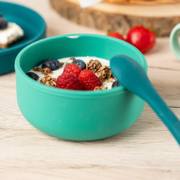 Reer silikoniastiasto on 4-osainen setti pienille ruokailijoille. Settiin kuuluu lautanen, kulho, muki ja lusikka.