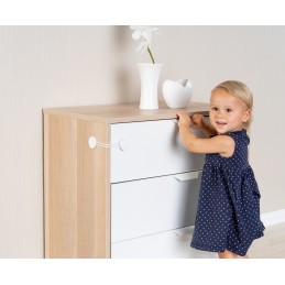 Turvalaite voidaan kiinnittää kaikkiin huonekaluihin, jotka mahdollistavat kulma-asennuksen. Lukolla voit lukita luotettavasti kaapit ja laatikot, joissa on lääkkeitä tai teräviä esineitä, kuten esimerkiksi veitsiä tai saksia. Myös sähkölaitteet, kuten jääkaapit, astianpesukoneet ja mikroaaltouunit, voidaan suojata. Tämä estää lastasi joutumasta kosketuksiin herkkien esineiden kanssa tai pakastimen sulamisen avaamalla sen vahingossa. Yksinkertaisen ja modernin muotoilunsa ansiosta yleissalpa sopii kaikkiin asuinympäristöihin.
