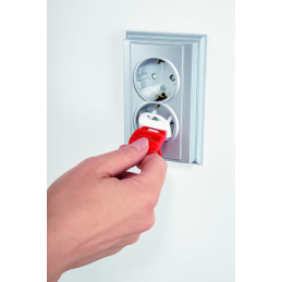6 kappaleen paketillinen pistorasiansuojia riittää jo pitkälle pienen lapsen turvaamisessa sähköiskuilta! Nämä suojat peittävät pistorasiat luotettavasti ja turvallisesti, eikä lapsi pysty mitenkään poistamaan suojaa. Suojat kiinnitetään ilman liimaamista tai ruuvaamista, joten ne ovat ideaalit myös matkoille tai tilapäiseen tarpeeseen. Pistorasia irrotetaan paketissa mukana tulevalla ylimääräisellä, punaisella suojalla.