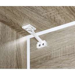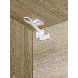 Turvasalpa voidaan asentaa sekä laatikon- että kaapinoven sisäpuolelle yläosaan tai sivulle tilanteen vaatiessa. Turvasalpa ei näy ulkopuolelta. Testattu standardin EN 16948:2017 mukaan.