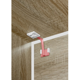 Liitä sitten tarrautuvat osat kaapin oveen, sulje laatikko ja odota hetki. Sitten sinun tarvitsee vain vaihtaa kiinnitysapu turvasalpaan ja ruuvata kaikki yhteen – valmis!