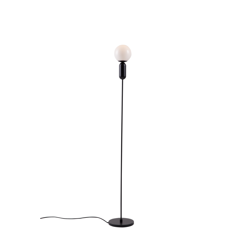 Glob lattiavalaisimessa on hiiliteräksestä ja alumiinista valmistettu mattamusta runko ja mattavalkoinen lasikupu.