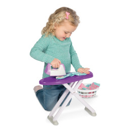 Tämä mainio Silityspäivä-setti pitää sisällään kaiken, mitä pieni apuri tarvitsee vaatteiden kuivaamiseen ja silittämiseen. Pakettiin sisältyy pyörivä kuivausteline, joka sopii mainiosti pienimmille vaatteille, ja taittuu kokoon leikkien päätteeksi. Silittämiseen setissä on taittuva silityslauta sekä aidon oloinen höyrysilitysrauta. Lisäksi mukana tulee pyykkipoikia, henkareita sekä pyykkikori. Kuivain 64cm, silityslaudan korkeus 29cm. Nukenvaatteet ja paristot eivät kuulu toimitukseen.