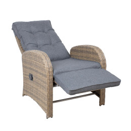 Tutustu Moor-nojatuoliin, joka tarjoaa ultimaattisen mukavuuden ja tyylikkyyden yhdistelmän. Tämän ainutlaatuisen säädettävän nojatuolin runko on valmistettu kestävästä alumiinista ja verhoiltu harmaalla muovirottingilla, mikä luo modernin ilmeen ulkotiloihisi. Gaslift-mekanismi mahdollistaa selkänojan ja jalkatuen säädön sujuvasti makuuasentoon – täydellinen rentoutumiseen pitkän päivän jälkeen. Istuintyynyt ovat peitetty kestävällä polyesterikankaalla, joka kestää vaihtelevia sääolosuhteita. Moor-nojatuoli on erinomainen valinta niille, jotka arvostavat helppohoitoisuutta ja kestävyyttä.