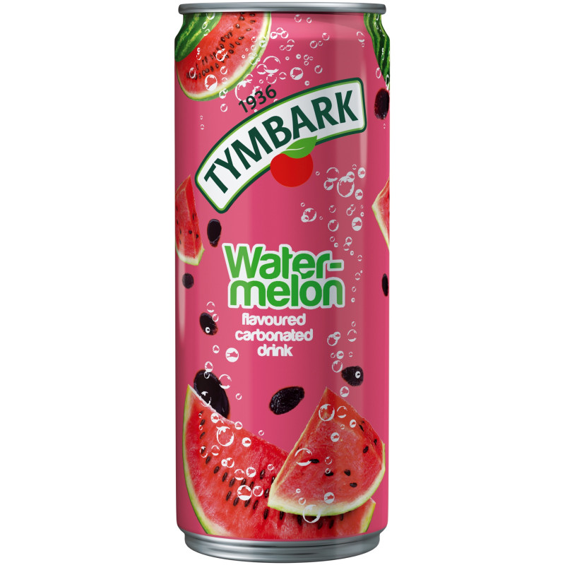 Tymbark vesimelonin makuinen hiilihapotettu juoma. Pastöroitu. Makeutettu sokerilla ja makeutusaineilla. Ainesosat: vesi, sokeri, hiilidioksidi, vesimelonimehu tiivisteestä (1%), happamuudensäätöaine – sitruunahappo, väri – karmiini, mustaporkkana- ja mustikkatiivisteet, makeutusaine – sukraloosi, aromit. Valmistuspäivämäärä:/ Parasta ennen (EX): katso painatus tölkin alareunasta. Valmistuspäivämäärä on myös eränumero. Säilytä viileässä ja kuivassa paikassa. Ei saa jäätyä. Paras tarjoiltuna jäähdytettynä. Käytä heti avaamisen jälkeen.