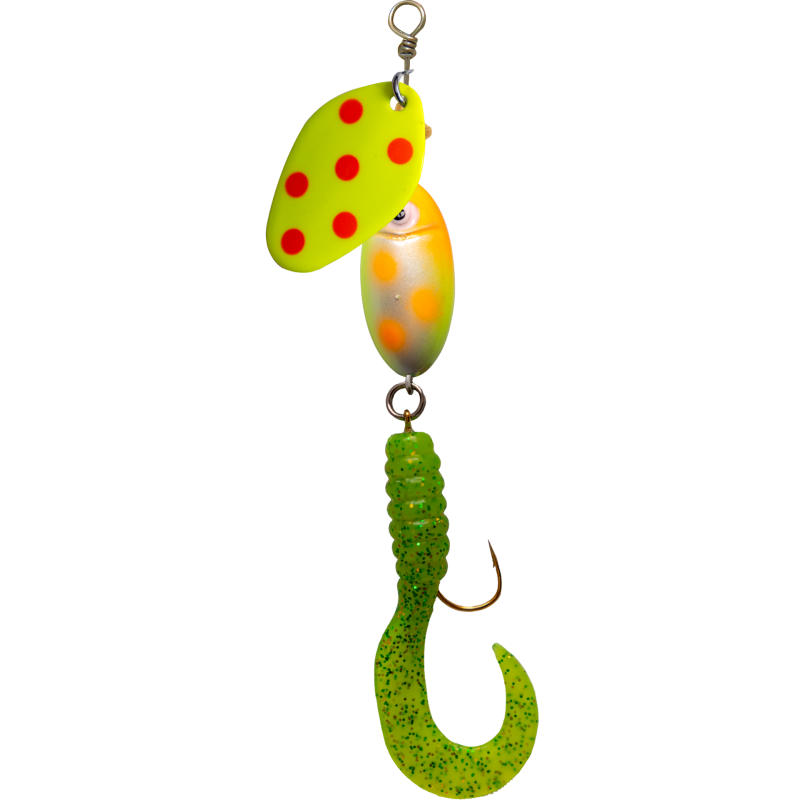 Todellinen Superlippa ahvenmiehille ja -naisille. Erittäin pitkäheittoinen ja varustettu räikeän pilkutetulla lippalehdellä, 1-haarakoukulla sekä vaihdettavissa olevalla jigihännällä. Maistuu myös taimenelle ja hauelle. Upeat tutut Superlingon runkovärit!