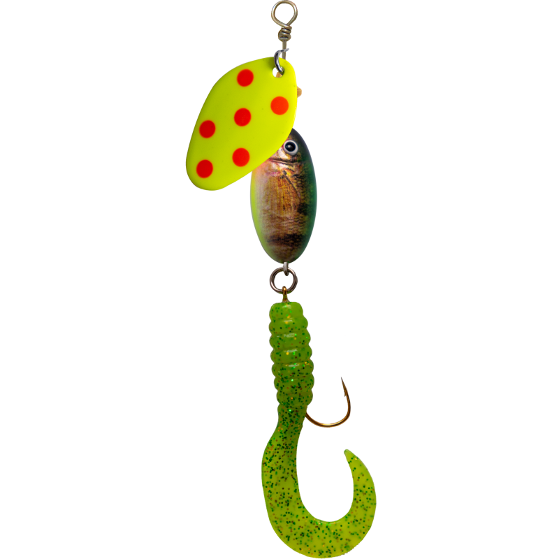 Todellinen Superlippa ahvenmiehille ja -naisille. Erittäin pitkäheittoinen ja varustettu räikeän pilkutetulla lippalehdellä, 1-haarakoukulla sekä vaihdettavissa olevalla jigihännällä. Maistuu myös taimenelle ja hauelle. Upeat tutut Superlingon runkovärit!