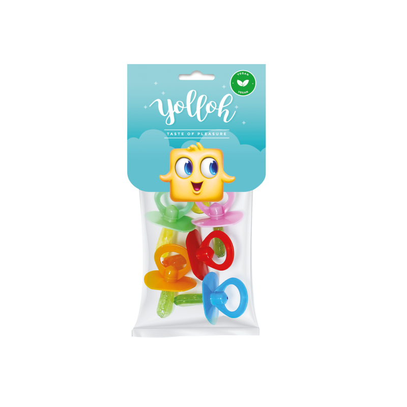 Yolloh-nappar erbjuder en rolig och vegansk godbit. Dessa nappformade hårda sockergodis är ett roligt och annorlunda val för en sötsuger i vardagen. De är fulla av smak och njuter av sitt färgglada utseende. Godisarna är veganska, så du kan njuta av dem med gott samvete. Tänk dock på att de inte är lämpliga för barn under 3 år på grund av smådelar. Överraska dig själv och dina nära och kära med dessa roliga och läckra godisar - Yolloh-nappar ger dig ett leende!