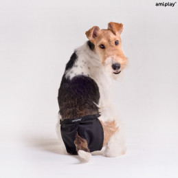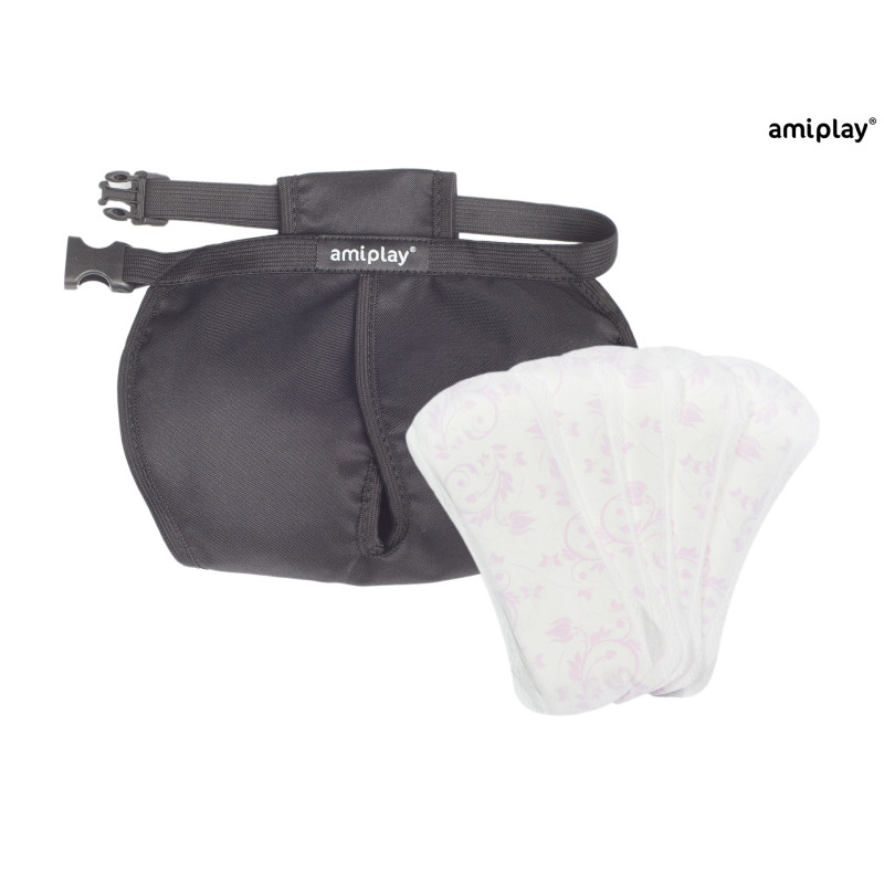 Laadukas kangas on hygieeninen ja mukava koiran päällä. Pakkaus sisältää myös viisi kertakäyttöistä vaihtosidettä. Myöhemmin Amiplayn juoksuhousuissa voi käyttää muitakin siteitä.
