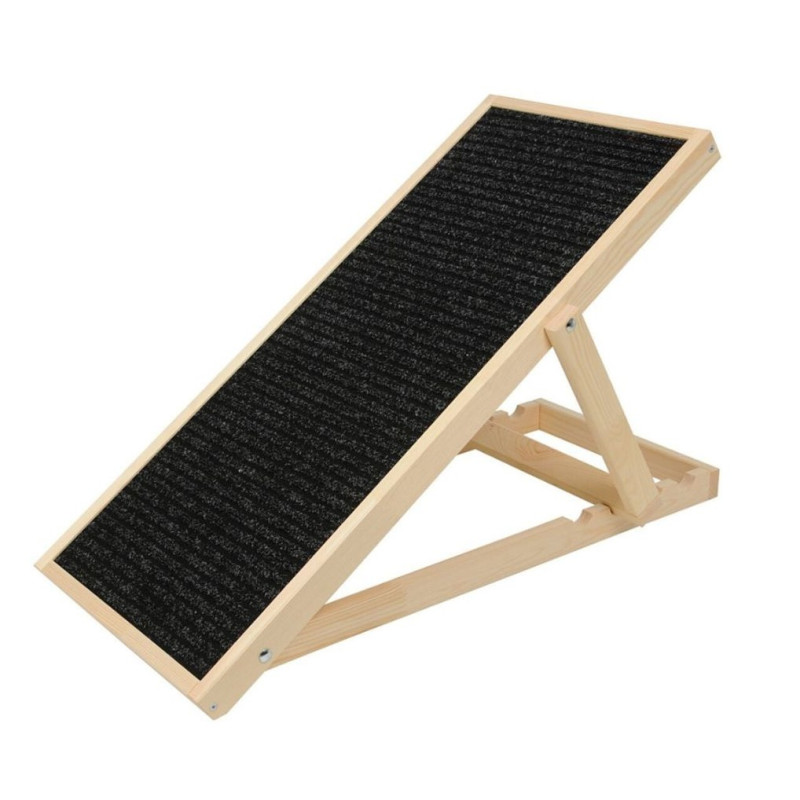 Mäntypuusta ja vanerista valmistettu ramppi on kestävä ja helppokäyttöinen. Asennusta ei tarvita, sillä tuote on kokoontaitettava. Rampilla on neljä korkeusasetusta — 40 cm, 45,5 cm, 50 cm ja 54 cm — ja se kannattaa jopa 60 kg painoista koiraa! Kasaan taitettuna Apuri menee pieneen tilaan ja kulkee helposti mukana. Pohjan silikonityynyt huolehtivat, että ramppi pysyy paikallaan ja kangaspäällysteisestä pinnasta tassu ei herkästi lipsahda. Tämä tuote sopii jokaiseen kotiin ja jokaiselle koirarodulle. Mäntypuun, vanerin ja liukumattoman kankaan yhdistelmä kestää loistavasti käyttöä!
