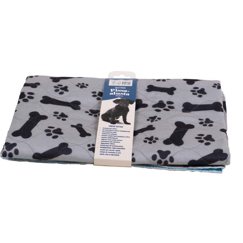 Harmaa väri ja mustat luu- ja tassukuviot tekevät alustasta tyylikkään valinnan kotiin. Sen monikäyttöisyys tekee siitä sopivan paitsi pennuille ja senioreille myös toipilaille, vesikupin alle, huonekalujen tai mattojen suojaksi sekä autoon ja kuljetushäkkiin. Viksu pissa-alusta tuo mukavuutta ja siisteyttä arkeen, oli käyttötarve mikä tahansa.