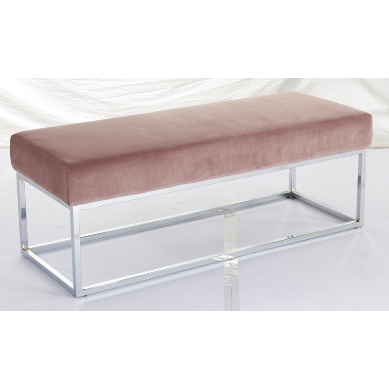 Pehmustettu kromijalustainen penkki on verhoiltu laadukkaalla huonekalukankaalla.