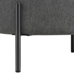 Hillityn tyylikäs pyöreä rahi siroilla metallijaloilla. Tässä yhdistyvät ajattomalla tavalla moderni muotokieli ja kangasverhoilun retrohenkisyys. Sirot jalat tuovat kokonaisuuteen ilmavuutta, mikä tekee siitä mainiosti soveltuvan sisustuselementin monenlaisiin tilaratkaisuihin.