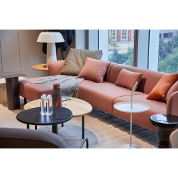 Halo L pöytävalaisimen on suunnitellut DOS Signorotto Design, Italy. Mattavalkoisen valaisimen materiaali on hiiliteräs ja alumiini. Mitat: k 62 x Ø 50 cm.