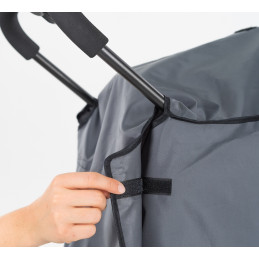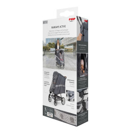 Reer DesignLine Active on tyylikkään harmaa ja helppokäyttöinen sadesuoja lastenrattaille. Sateen sattuessa, se on nopea kiinnittää paikoilleen tarranauhojen avulla. Vahvat kiinnityskoukut pitävät suojan paikallaan tuulisella säällä. Iso ikkuna helpottaa ilmanvaihtoa ja yhteydenpitoa lapsen kanssa suojan. Heijastavat elementit tuovat lisää käyttöturvallisuutta. Suoja kulkee matkassa kätevästi mukana tulevassa säilytyspussissa.