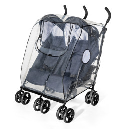 RainSafe Twin sopii yleisesti kaksosten vaunuihin, rattaisiin ja urheilukärryihin. Se tarjoaa suojan tuulta ja säätä vastaan. Erittäin suuri katseluikkuna mahdollistaa suoran kontaktin lapsiin. Suuret tuuletusaukot takaavat optimaalisen ilmanvaihdon. Lisäkiinnityskoukut varmistavat tukevan otteen kovassa tuulessa. Sadesuojan käyttö on yksinkertaista: aseta sadesuoja vaunujen päälle, kiinnitä tarranauhat takaosaan, ja aseta kiinnityskoukut rungon päälle ja kiinnitä ne.
