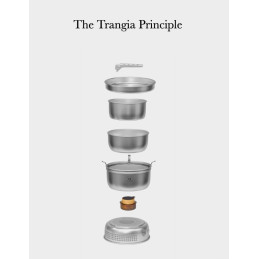 Trangia 25 large -keitinsarjan isompi malli on täydellinen setti 3-4 hengelle. Settiin kuuluu 1,75 ja 1,5 litran kattilat, paistinpannu, kahvipannu, tuulensuoja (ylä- ja alaosa), poltin, kahva ja hihna.