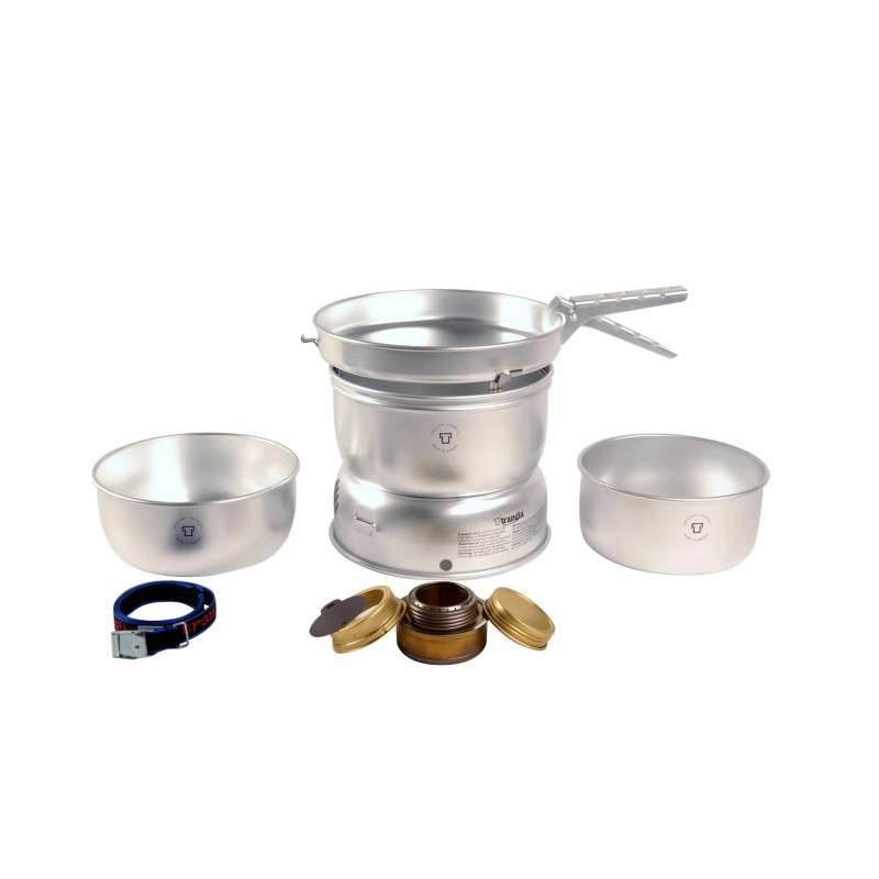 Trangia 25 large -keitinsarjan isompi malli on täydellinen setti 3-4 hengelle. Settiin kuuluu 1,75 ja 1,5 litran kattilat, paistinpannu, tuulensuoja (ylä- ja alaosa), poltin, kahva ja hihna.