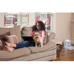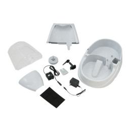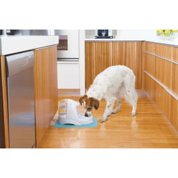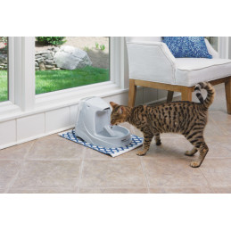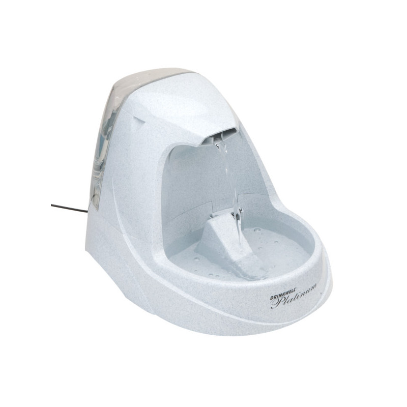 PetSafe® Drinkwell® Platinum Pet Fountain tarjoilee lemmikillesi 5 litraa raikasta, suodatettua vettä. Aktiivihiilisuodatin poistaa huonot maut ja hajut, kun taas vapaasti putoava vesivirta houkuttelee lemmikkiäsi juomaan enemmän. Sisäänrakennettu säiliö lisää kapasiteettia ja helpottaa täyttöä. Napsautettava säiliön kansi suojaa roiskeilta, ja kumijalat suihkulähteen pohjassa estävät liukumisen ja kaatumisen.