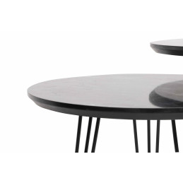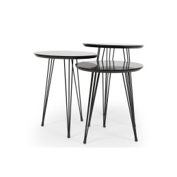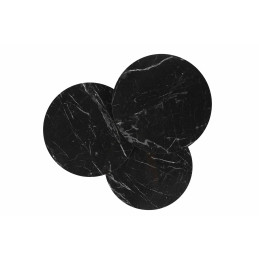 Käytännöllinen kolmen pöydän setti tyylikkäällä mustaa marmoria jäljittelevällä pinnalla. Pöydissä on hieman erikorkuiset jalat, joten voit vapaasti yhdistellä niitä ryhmäksi tai erilleen oman maun ja tilanteen mukaan.